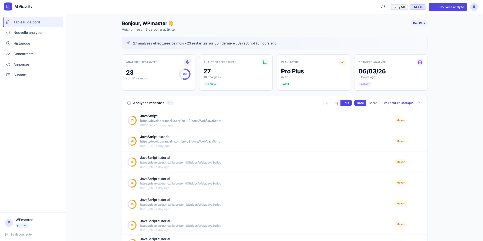 AI Search Visibility permet aux agences SEO d’auditer, structurer et optimiser les pages de leurs clients pour être citées dans ChatGPT, Gemini et Perplexity.