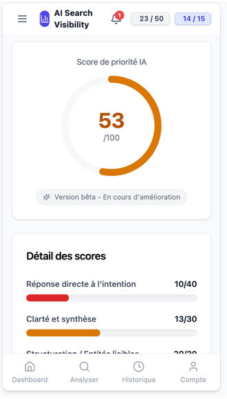 Mesurez précisément la priorité IA de chaque page analysée.